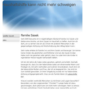 Durch den Dienst von Ivo Sasek fand ich heraus einem gesetzlichen, religiösen Christenleben hinein in eine täglich dynamische Beziehung zu Jesus Christus. Der Alltag ist total spannend geworden, weil ich jeden Moment erfahre, wie Christus sich in mir und allen Gliedern, die Ihn glaubend in sich erwarten, real und praktisch auslebt. Der Glaube ist nicht mehr eine sich bemühende Theorie, sondern eine ununterbrochene entspannte Praxis.