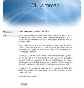 Deshalb ist es unser Verlangen zu bezeugen, dass gescheiterte Ehen und Familien wiederhergestellt und richtig funktionieren können. Das verdanken wir einem treuen Mann, Ivo Sasek. Er lehrt nicht nur, wie es geht, sondern lebt es mit seiner Familie konsequent vor. Unter diesem Dienst ist auch unsere Ehe und Familie, sowie viele tausend andere, lebensbejahend und glücklich geworden! Nur heile Familien haben die Chance und bieten ein haltbares Fundament, um in dieser Welt überleben zu können.
