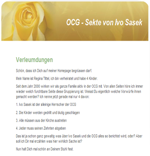 Hallo und herzlich willkommen auf meiner Homepage! Du bist genau richtig hier, um über obige Vorwürfe die Wahrheit zu erfahren. Mein Name ist Bernd Tittel, und ich bin seit dem Jahr 2000 "gefangen" in dieser herrlichen Sekte namens OCG. Ich kenne Ivo Sasek, den angeblichen Kinderprügler, Kinderschänder und hochgefährlichen Sektierer persönlich sehr gut. Ist es doch Ivo Sasek, der mich aus einem gesetzlichen, buchstabenabhängigen Christsein befreit hat.